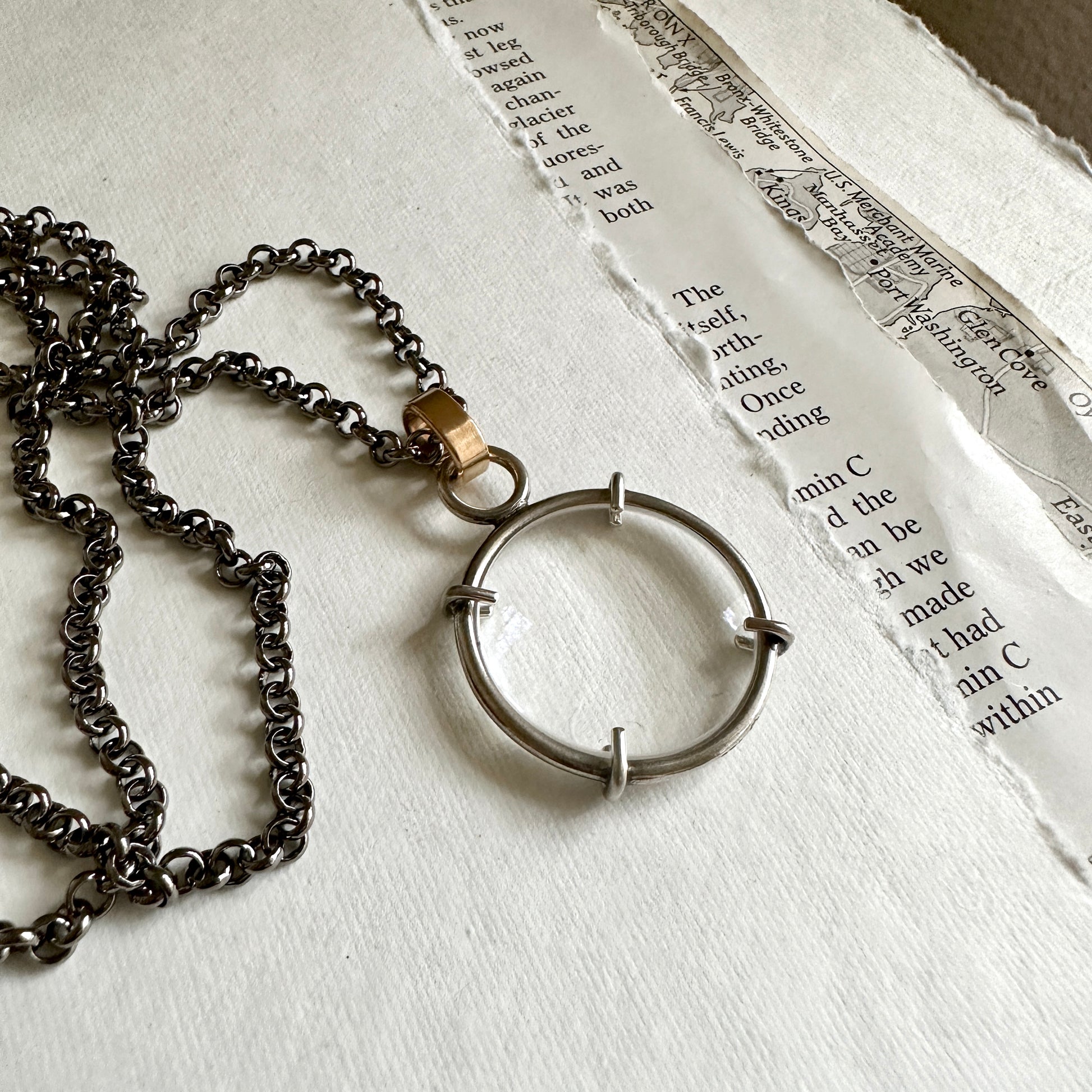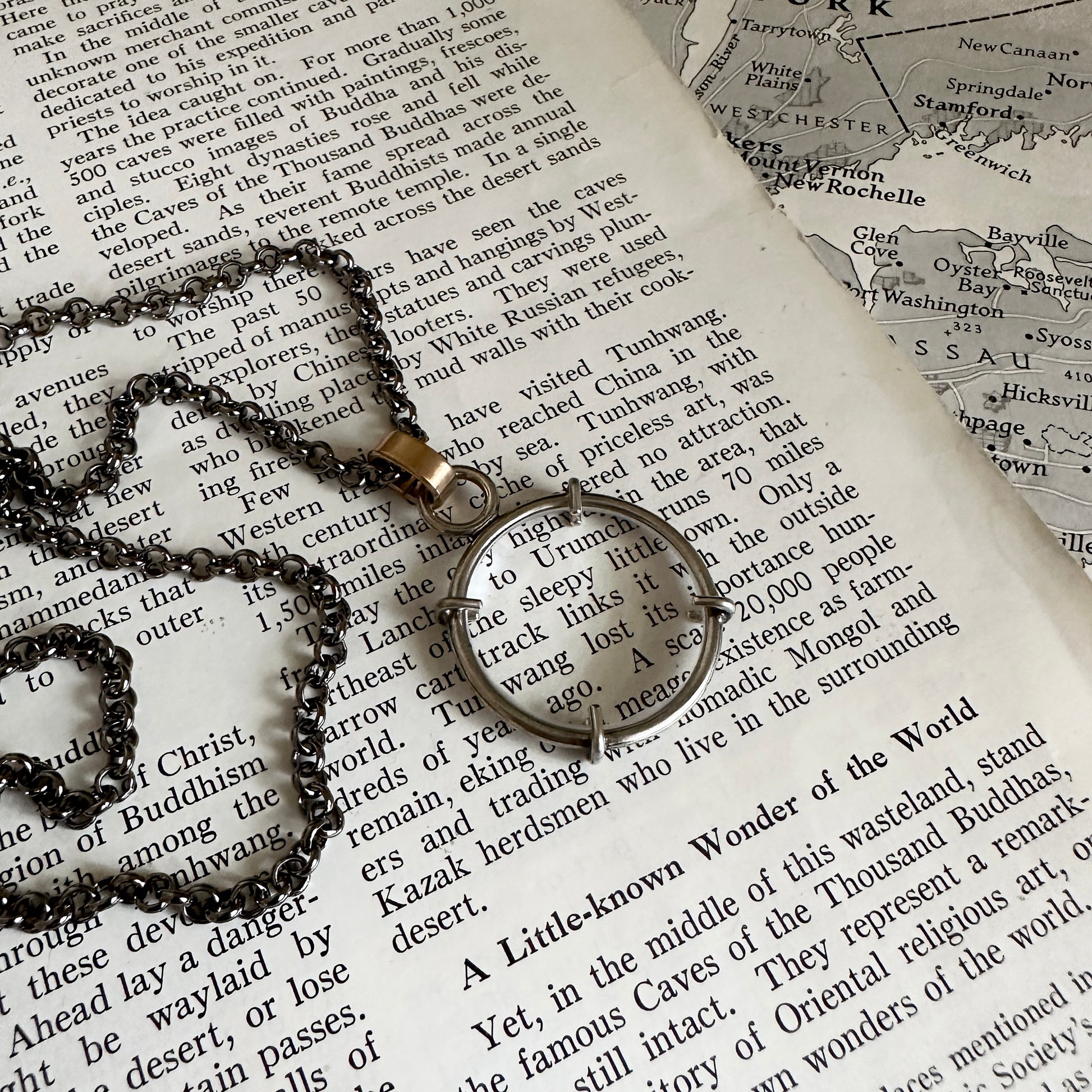 5x Magnifying Glass Monocle Necklace - Sterling w/ Brass - Mini 1" Lens