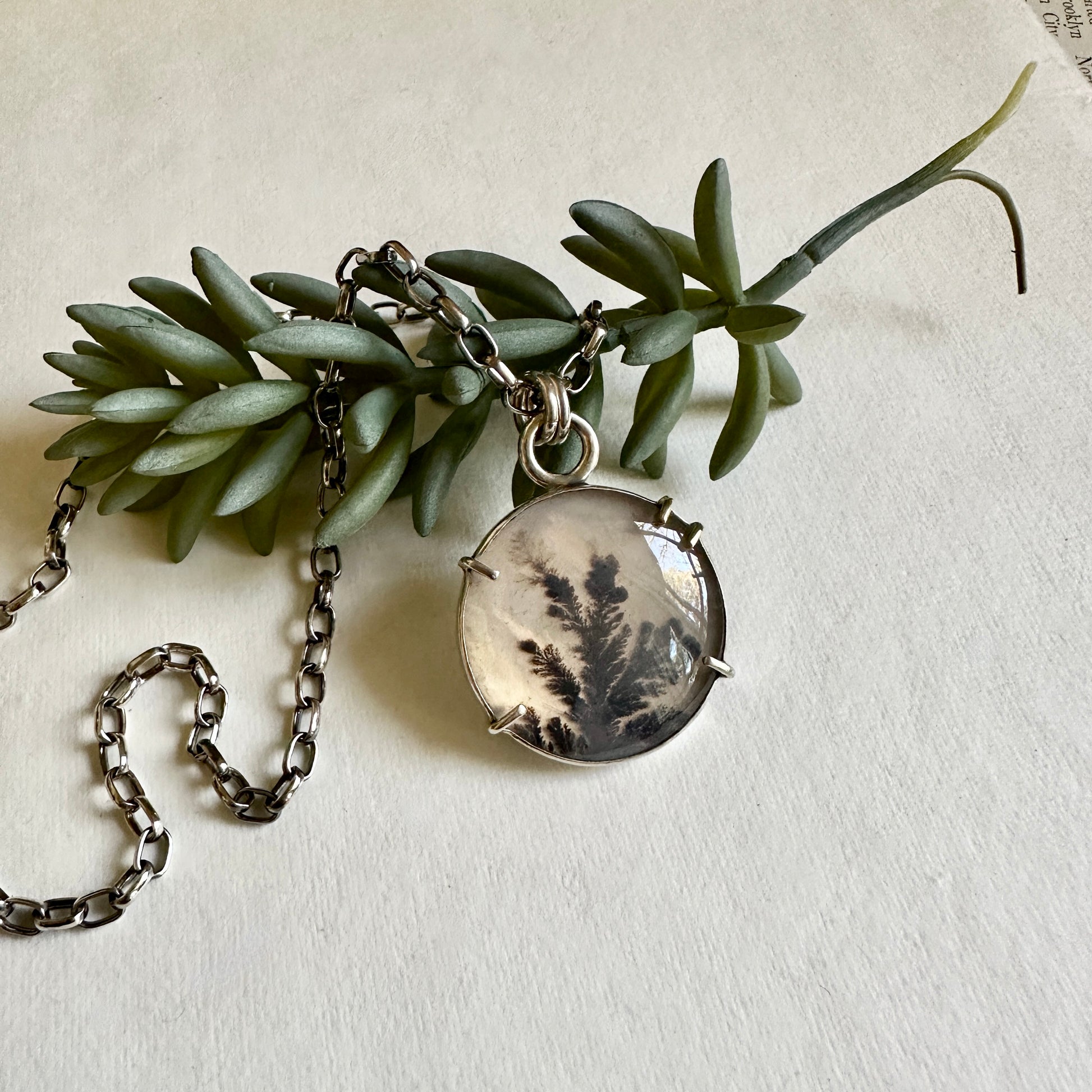 Dendritic Agate Doublet Necklace - Sterling & 18k