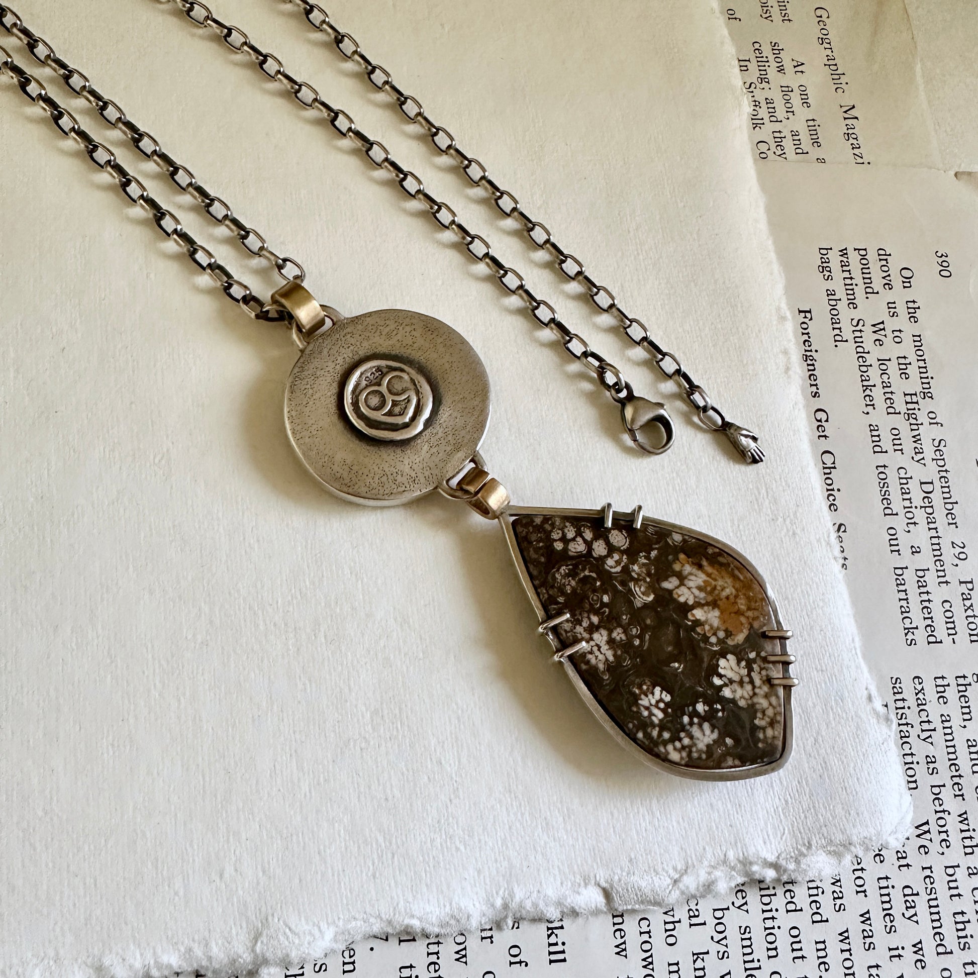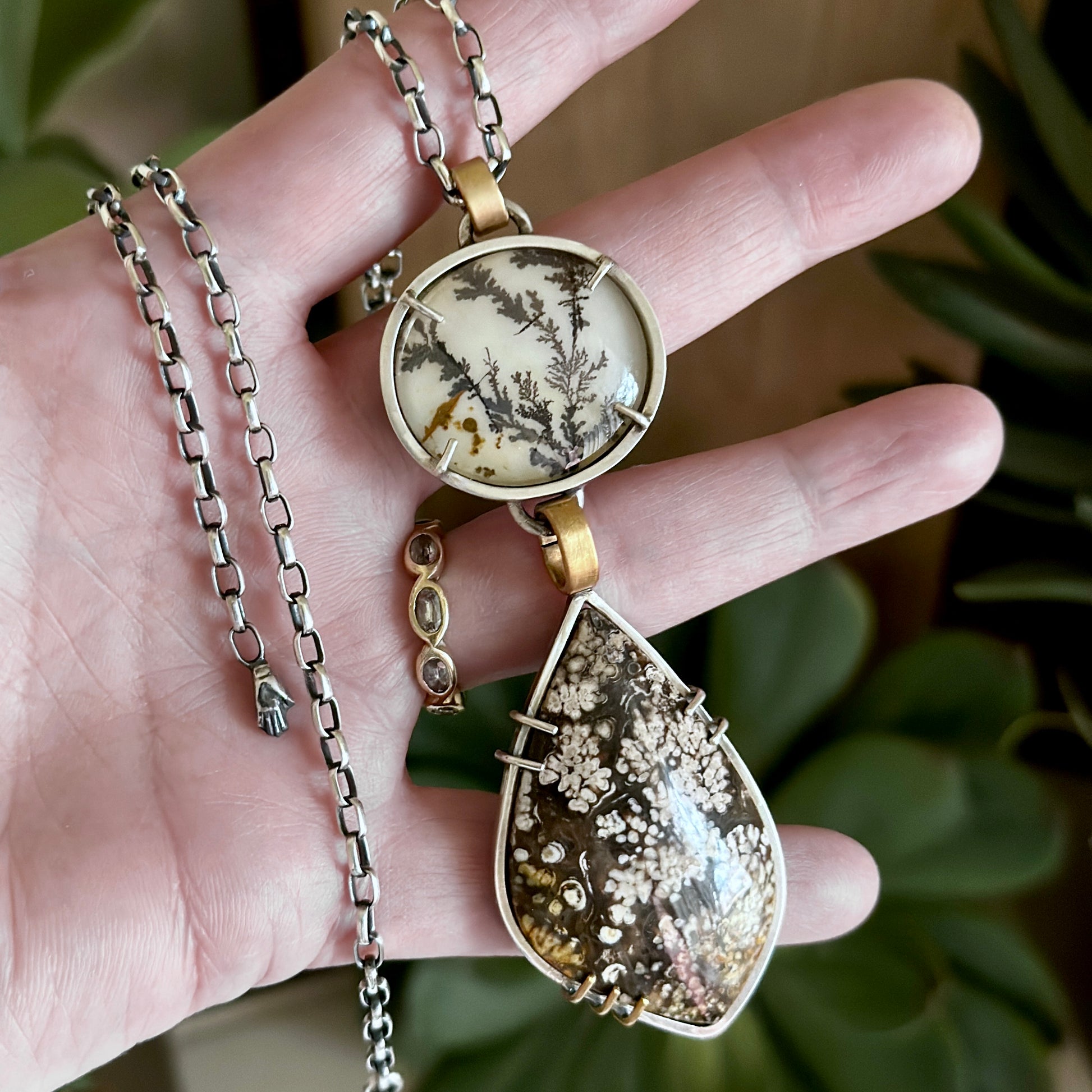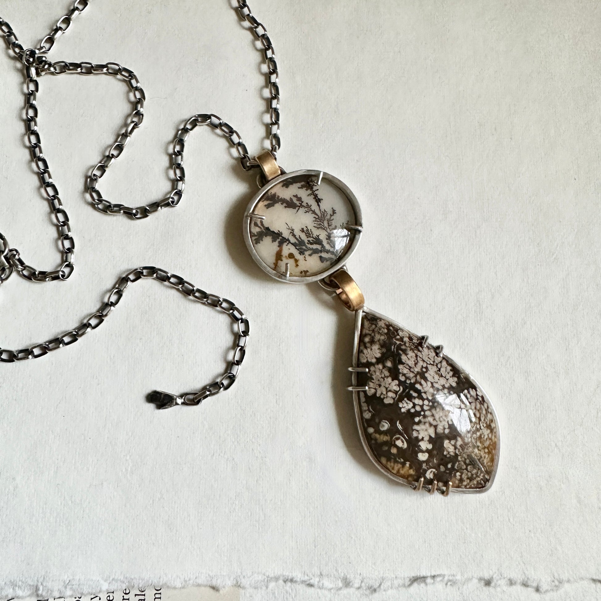 Dendritic Agate & Plume Agate Statement Necklace - Sterling & Vintage Brass