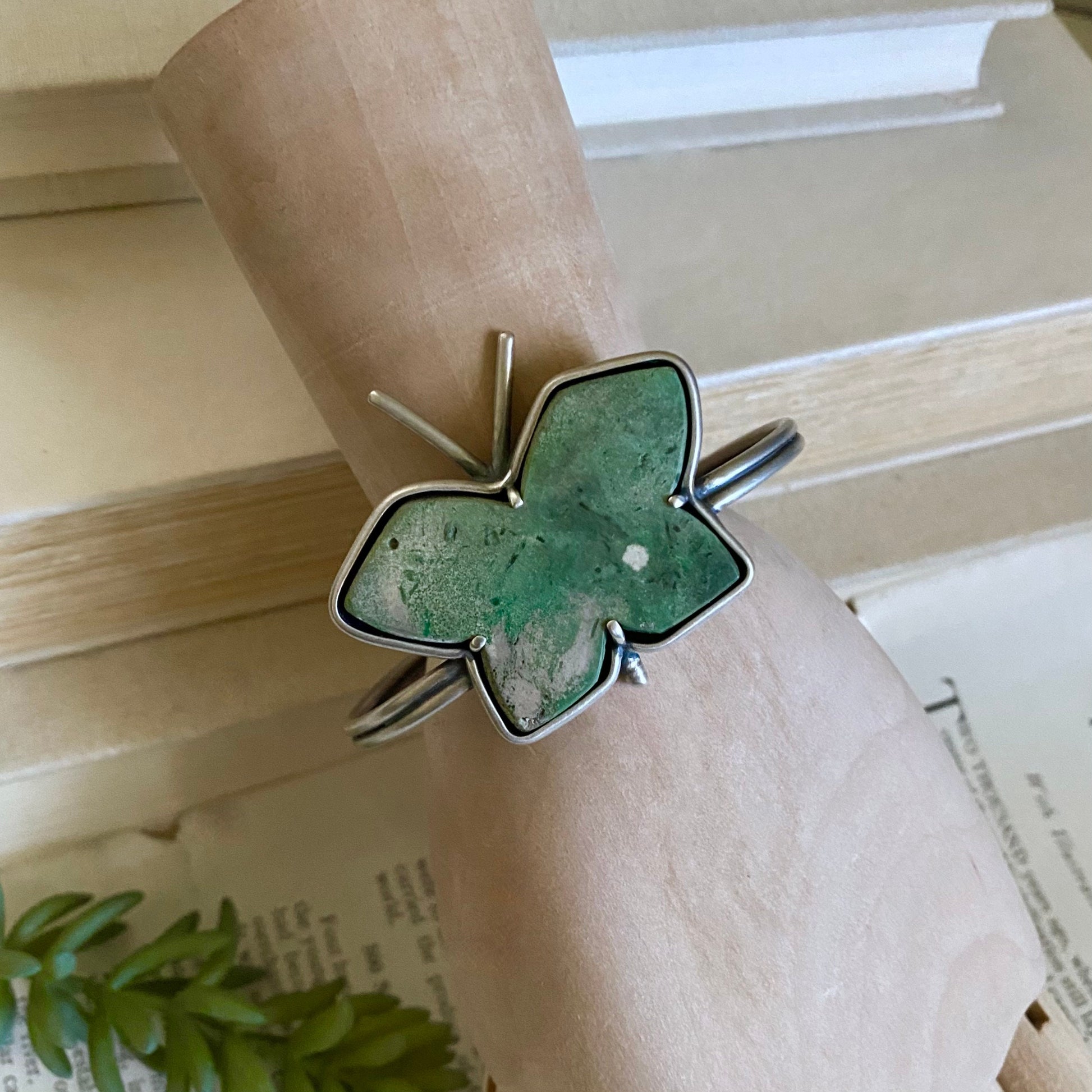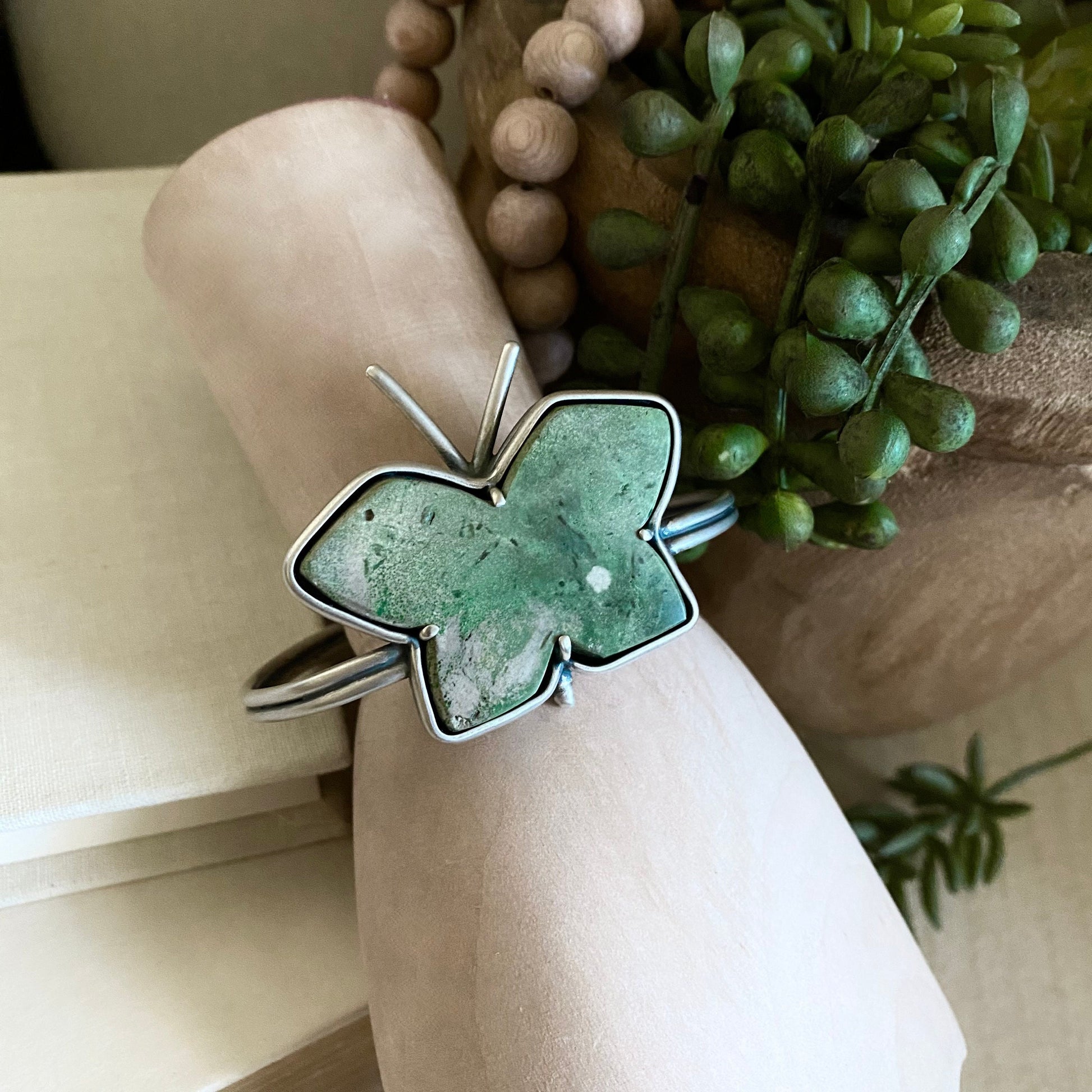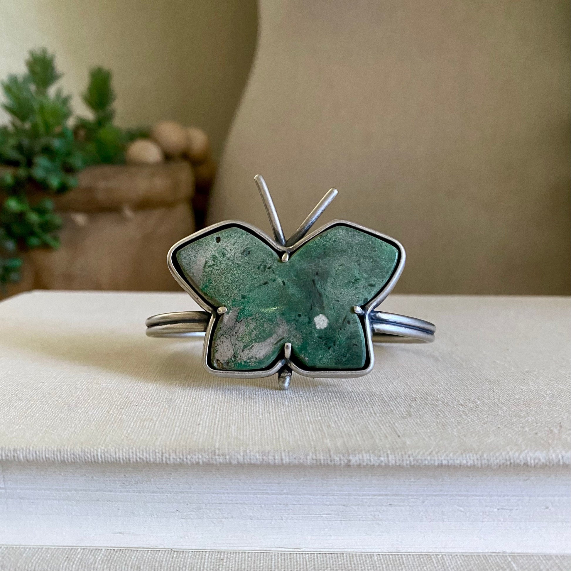 Not my usual Fancy F*ck Cuff ~ this lovely, rustic green yellowstone variscite butterfly was just begging to be set as a FLYING F*ck Cuff, so I obliged.