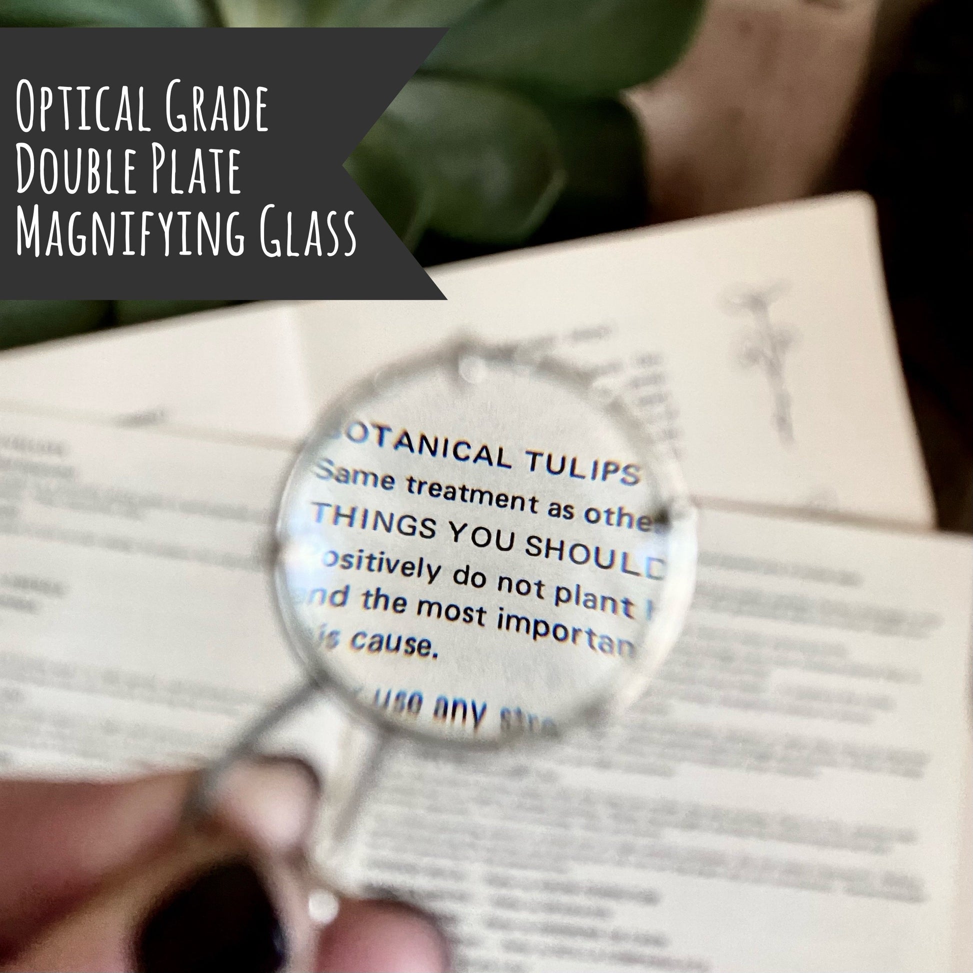 MINI 1" diameter magnifying glass in 5x power. Lens is optical-grade double plate glass - strong, durable and scratch resistant.