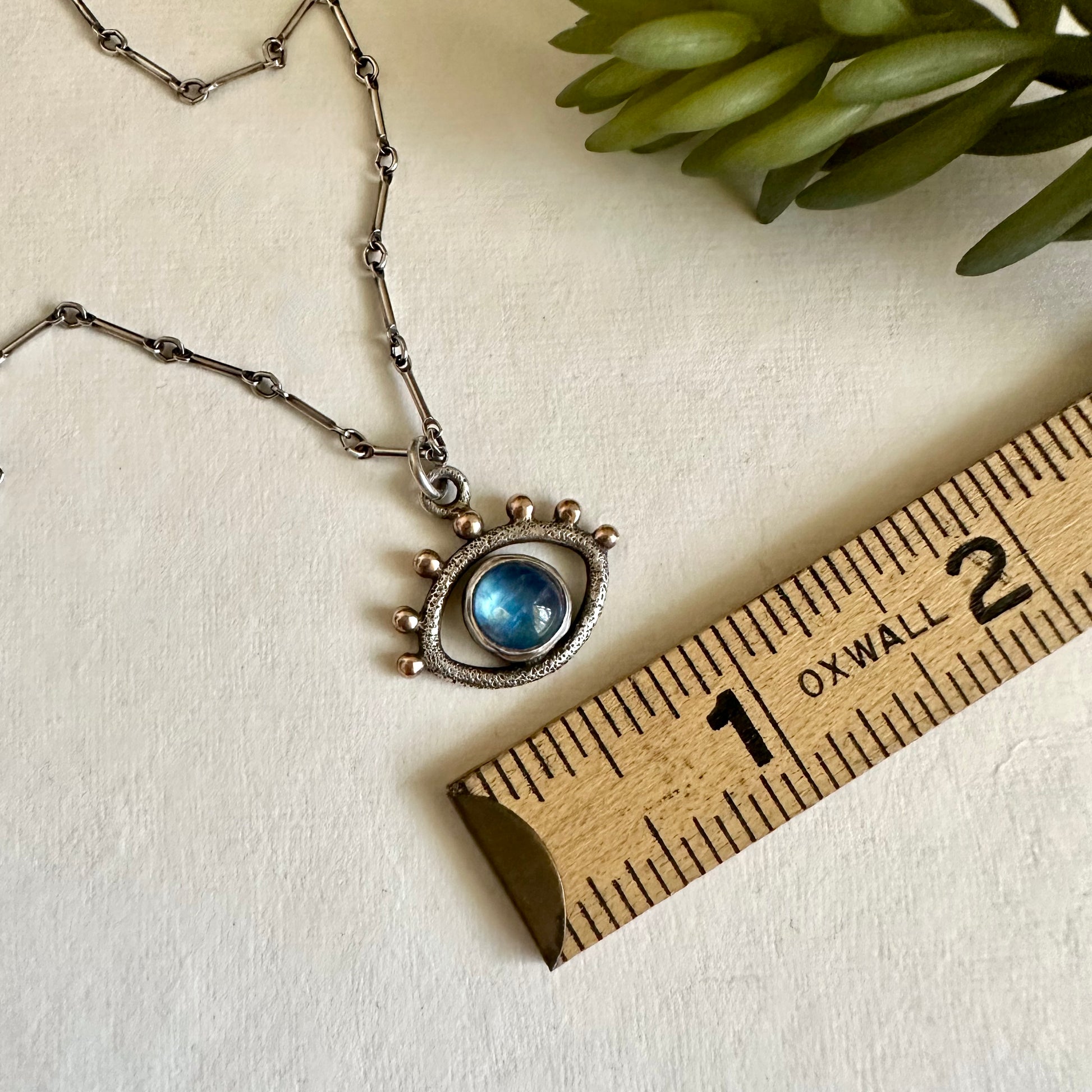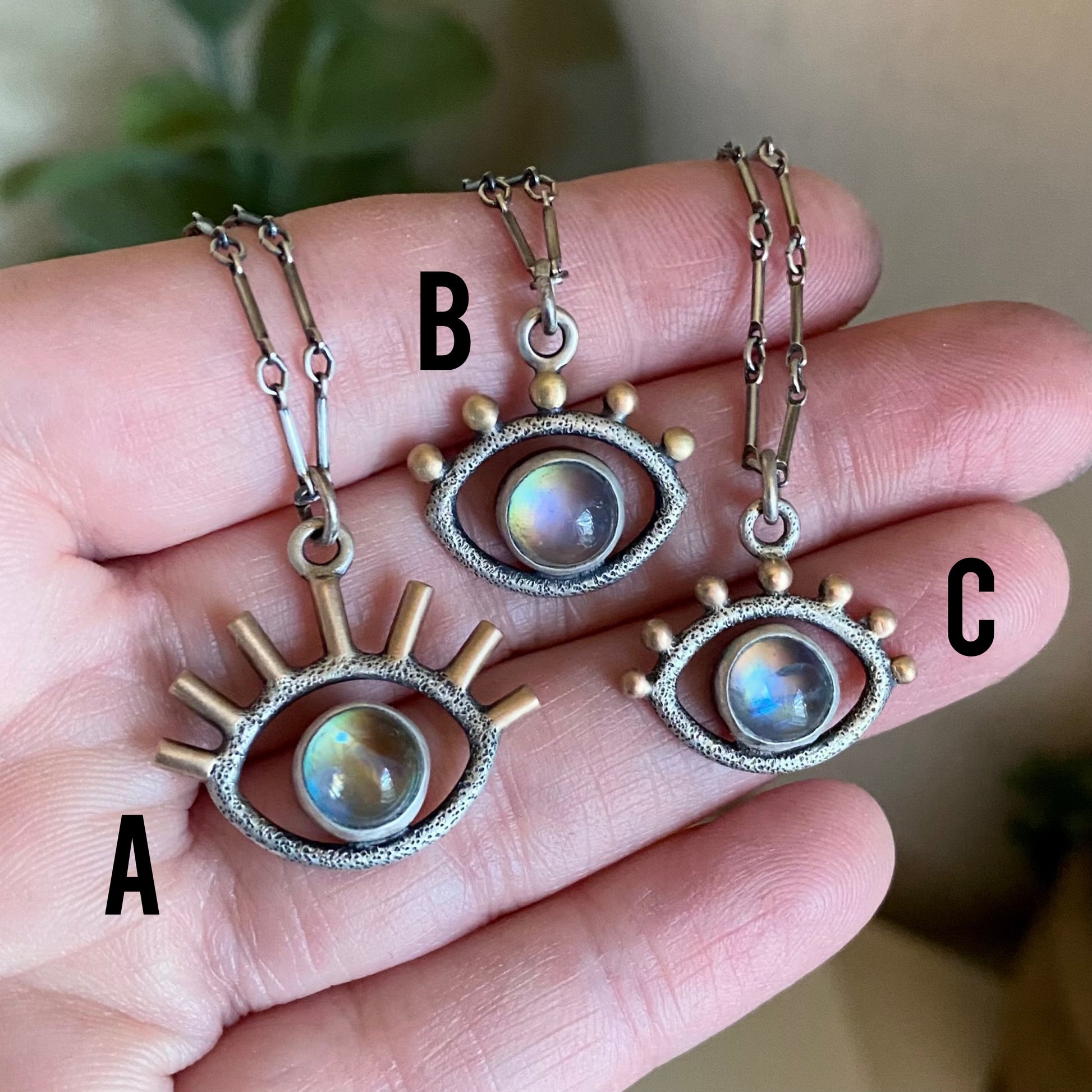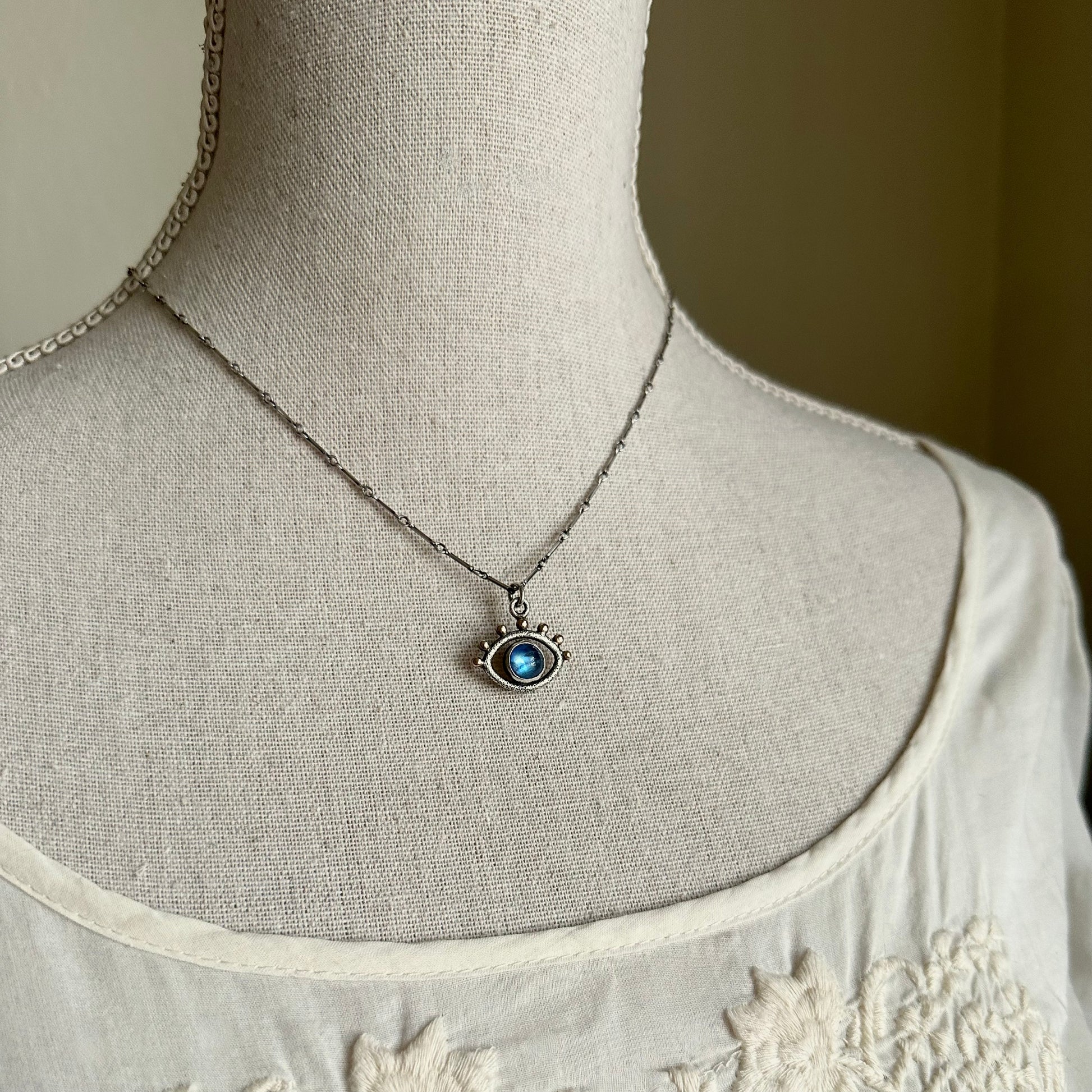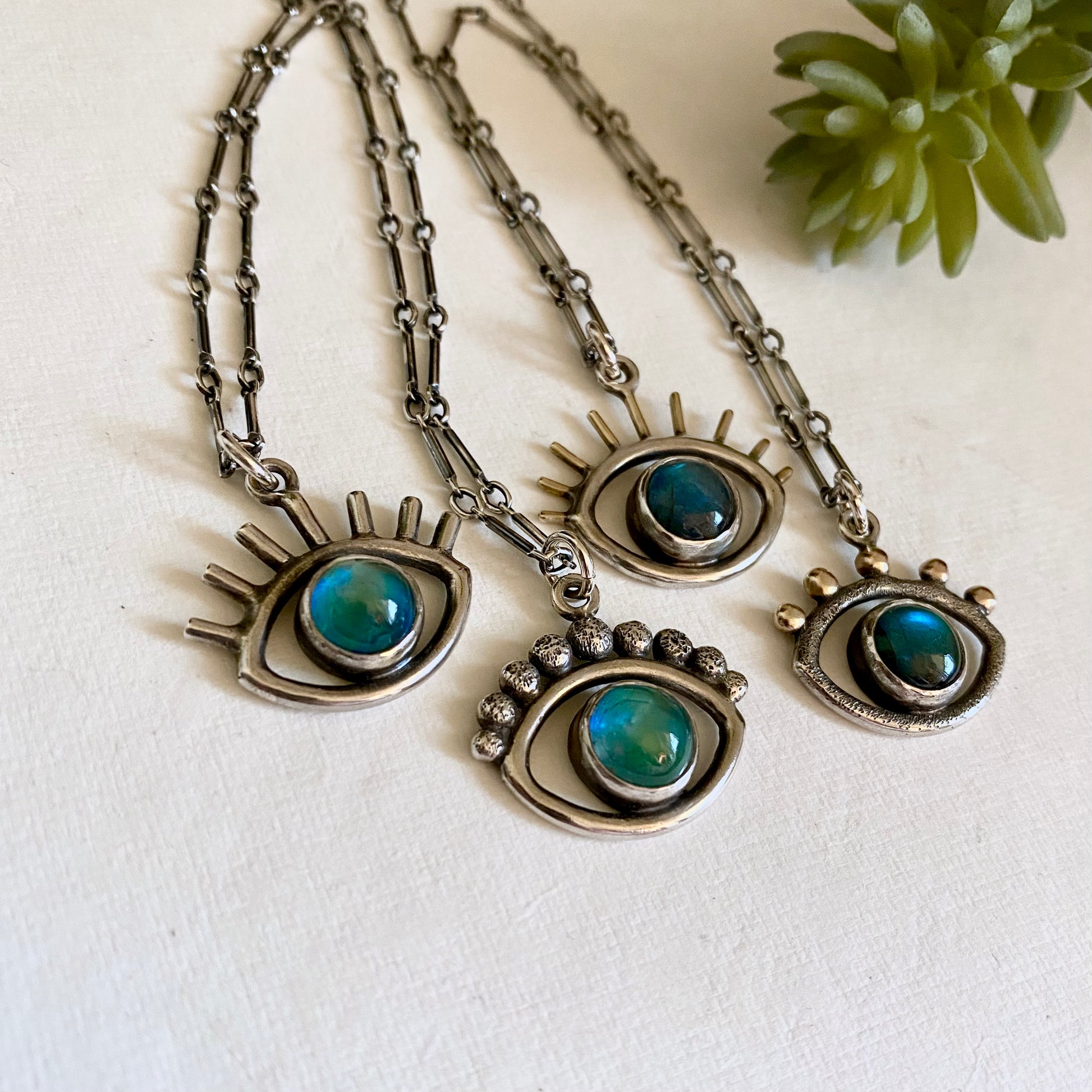 MOOD STONE Eye Necklace - Color-Changing GEMSTONE Mood Jewelry - Sterling, Moonstone & Labradorite