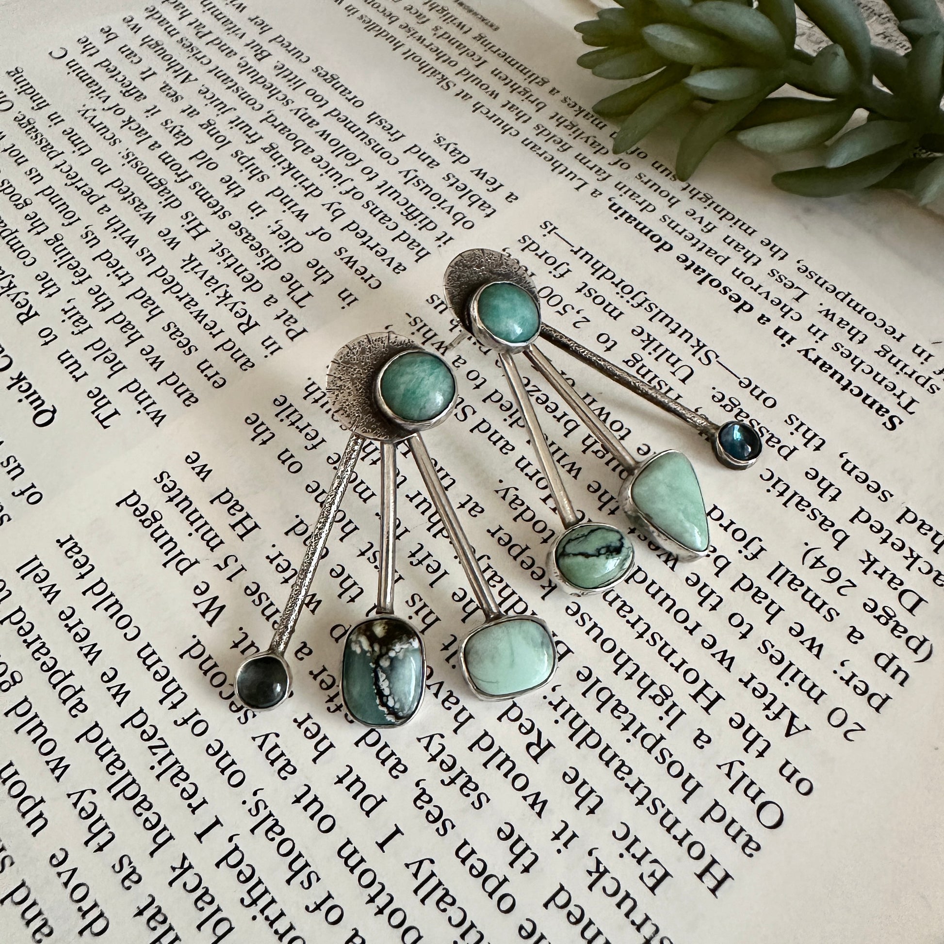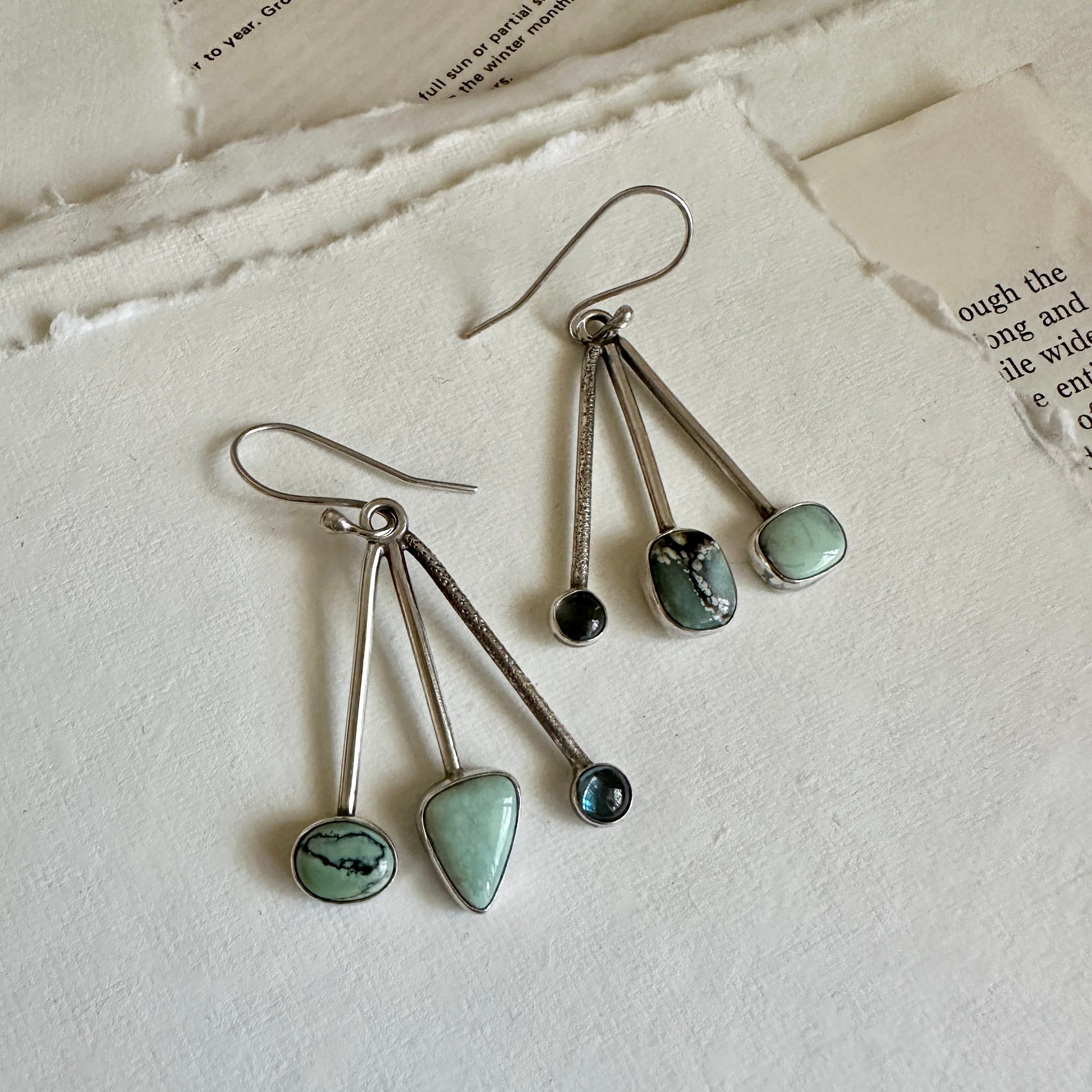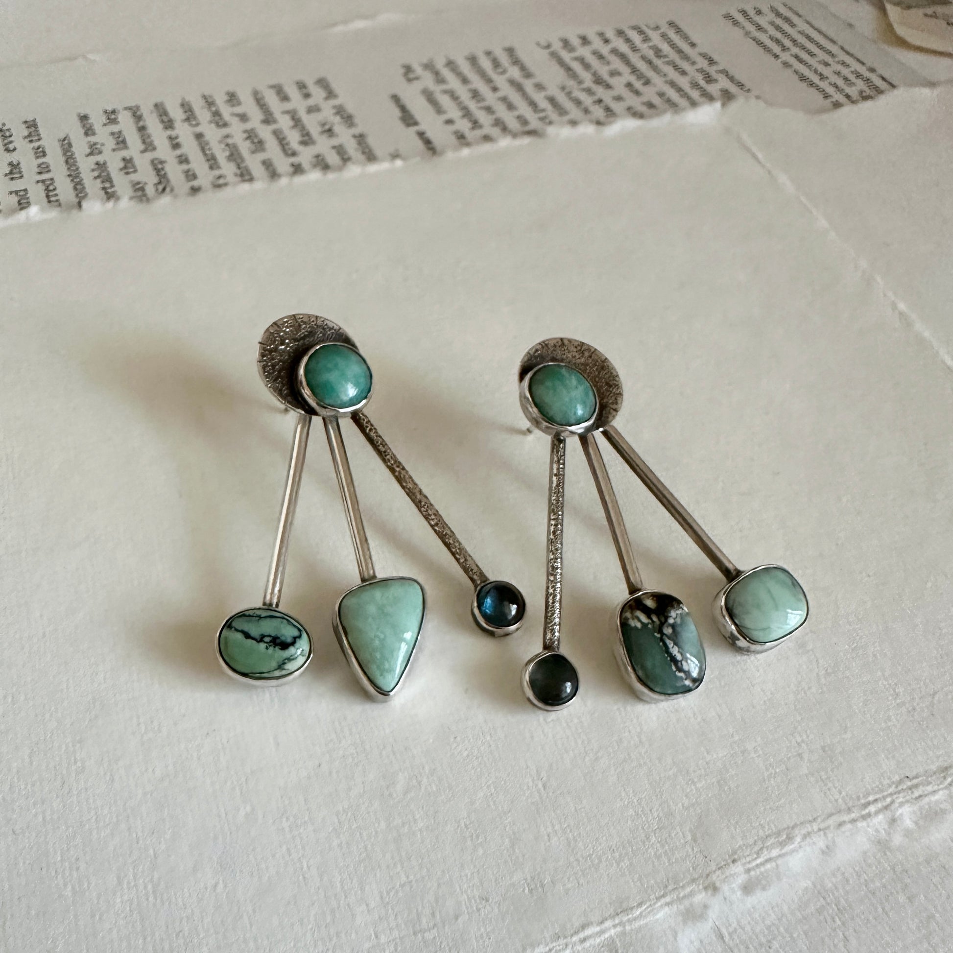 Convertible 3-Way Earrings - Sterling & New Lander Turquoise, London Blue Topaz & Amelia Teal Amazonite